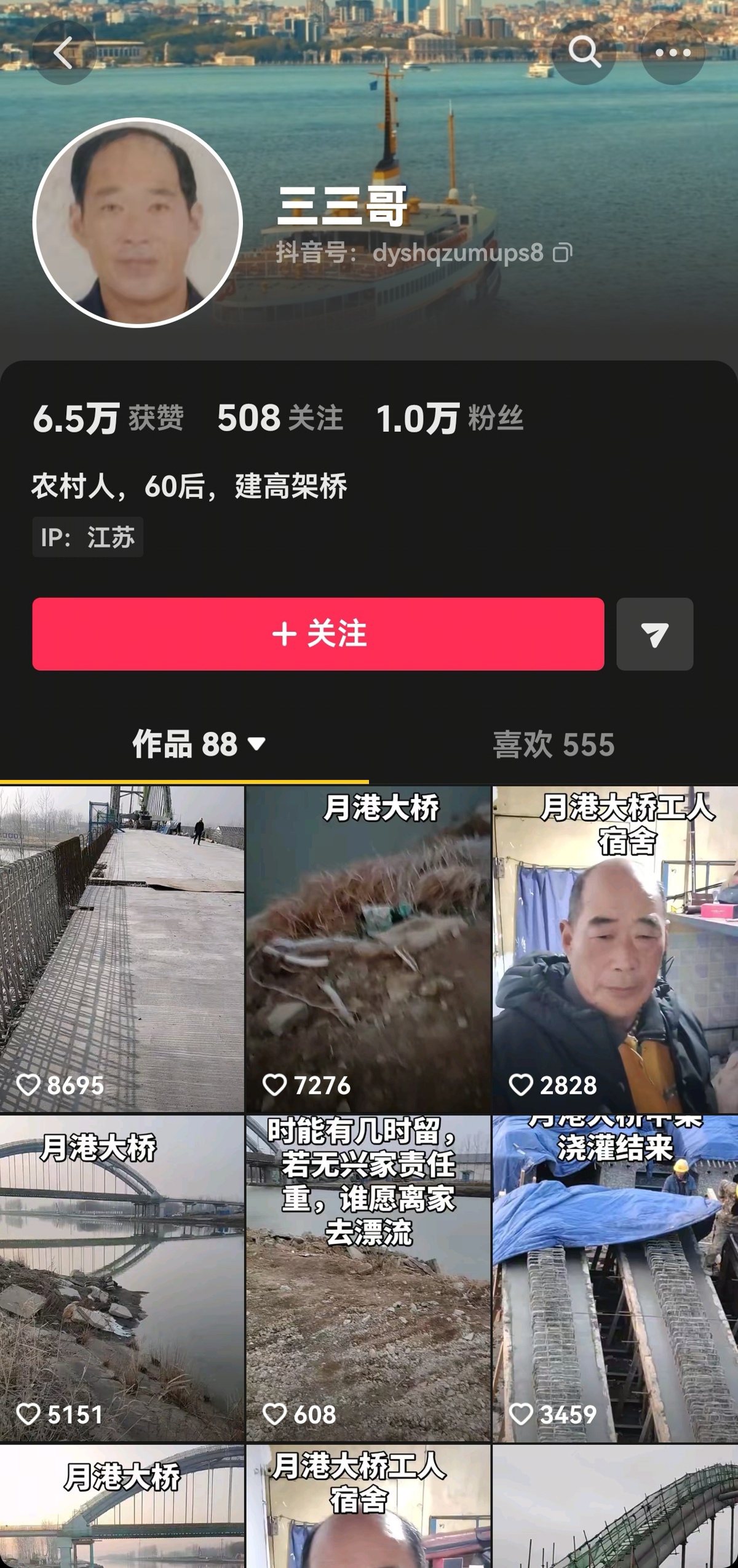 事故发生后,一网名“三三哥”的网友让网友挂念,往期视频中,他几乎每天都会在网上分享月港大桥的建设情况。其自我介绍称来自农村,是一名“60后”,和工友负责在工地打灰。在2月2日的视频评论区,他曾表示,“打完灰,再收拾一下就放假。”事故发生后,不少网友在其账号下留言询问其安危,但未见其回应。极目新闻记者留言也未获回复。