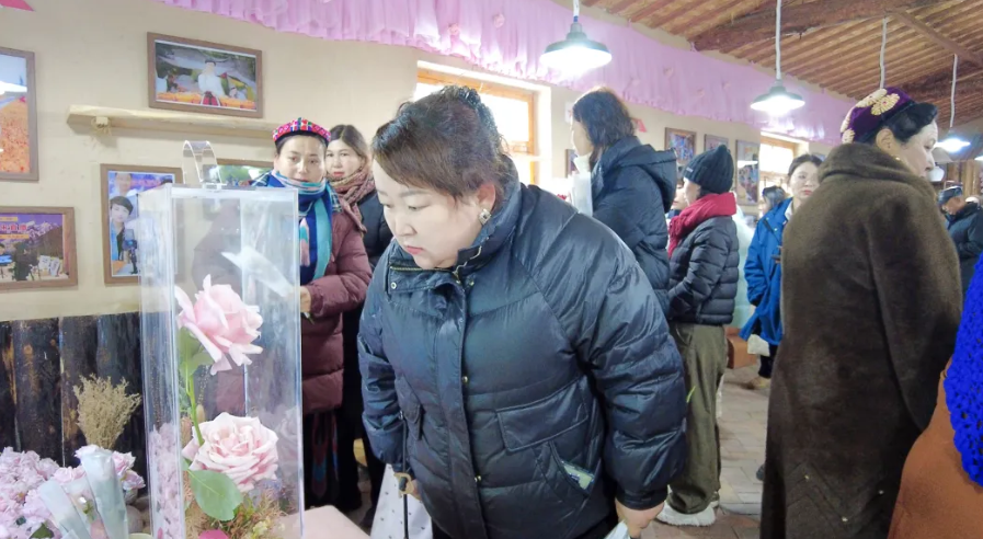 仪式结束后,全体人员前往“娇龙厅”参观。厅内陈列着贺娇龙同志的生前物品、全网征集的缅怀作品以及“娇龙”月季的相关资料。一张张照片、一件件实物,静静诉说着她扎根边疆、服务人民的点滴往事。大家驻足凝望,深切缅怀这位以生命践行初心的好干部,也更加坚定了传承其精神、砥砺前行的信念。