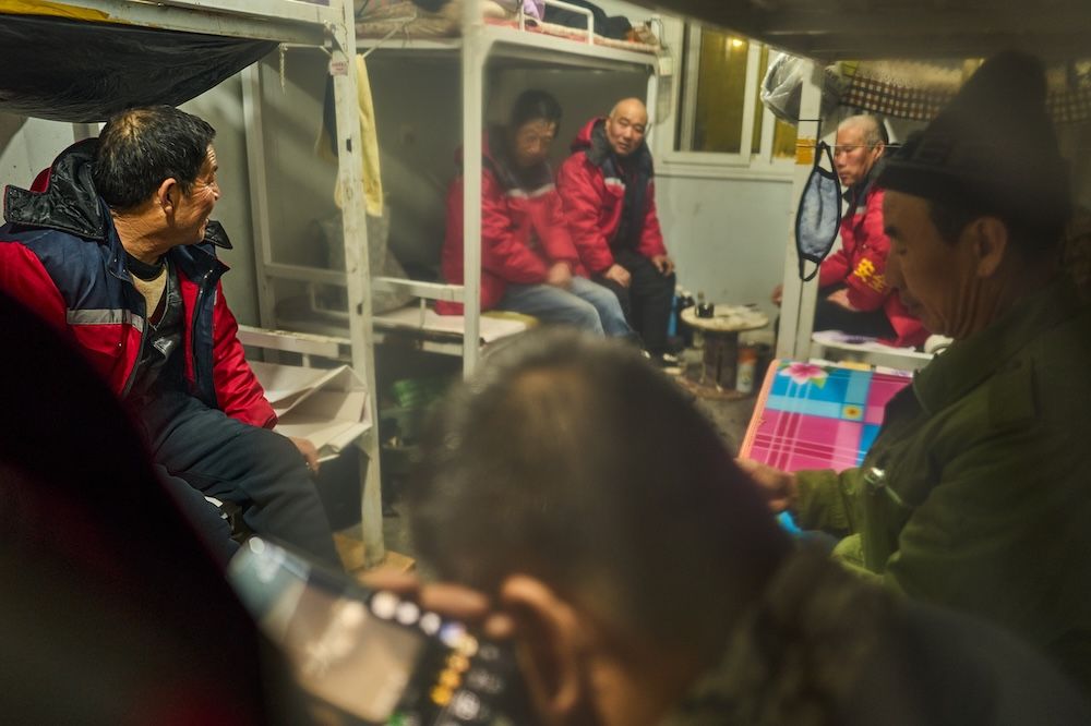 晚饭后,工友们坐在一起聊天。