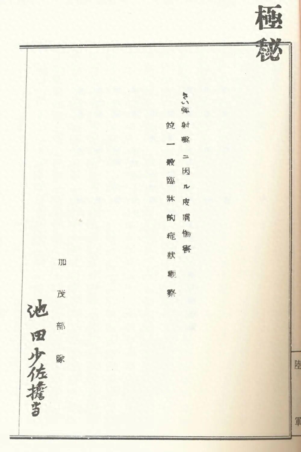 在黄弹射击人体实验中,池田苗夫将16名受试者强制置于伪装掩体、战壕等不同环境中。在第一实验区,受试者仅穿常服、内衣和拖鞋,在没有防毒面具情况下,暴露于毒气弹攻击。日军向实验区域发射了数千发毒气弹,其中第三区域发射量高达4800发。报告中详细记录了受试者各个时间段的病理变化,如被攻击后12小时皮肤起泡,12至24小时出现呼吸障碍,48小时后各类症状达到峰值。