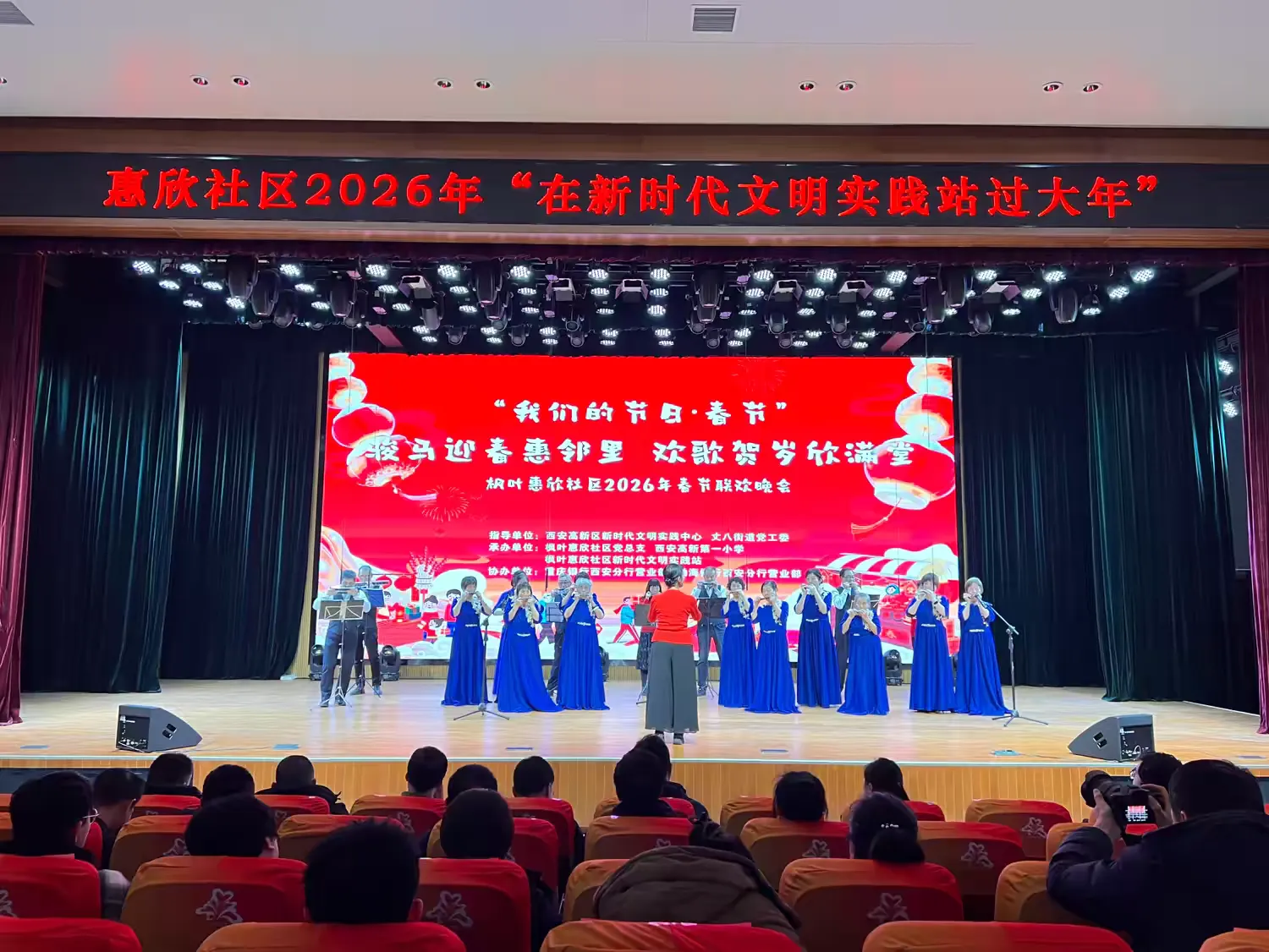 2月8日下午,西安高新区枫叶惠欣社区“我们的节日·春节 骏马迎春惠邻里,欢歌贺岁欣满堂”主题春晚温情启幕。本次活动由西安高新区新时代文明实践中心、丈八街道党工委指导,枫叶惠欣社区党总支、西安高新第一小学、枫叶惠欣社区新时代文明实践站联合承办。各类节目轮番上演、亮点纷呈,为现场观众带来了一场视听盛宴。