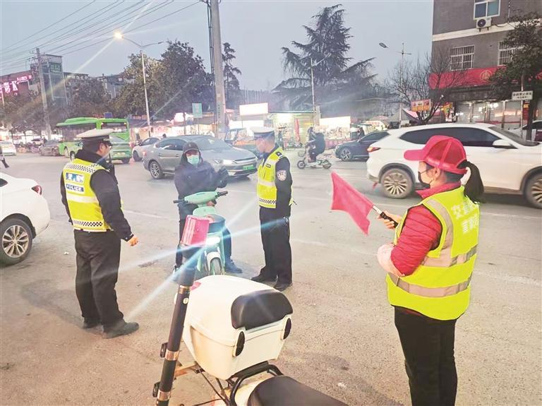 2月7日,清晨7时,西安高新区东大街道的青砖黛瓦浸在晨光里,66岁的林秀琴已站在路口。红袖章上的“交通志愿”四字映着朝阳,她手持引导旗,耐心劝导闯红灯的行人。