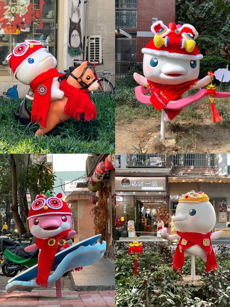 记者注意到,不仅六运小区,广州市儿童公园也发布视频,称园内的大湾鸡雕塑“穿上新衣服了,可可爱爱,年味十足”。视频中,大湾鸡头戴醒狮帽,显得俏皮又活泼。据悉,2月12日,还将有真人版大湾鸡人偶现身儿童公园。
