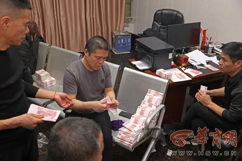 11:30,当全副武装的运钞车把2000多万元现金摆放在二楼大厅后,简短发放仪式后,分红按7个村民小组有序开展,每组安排4名工作人员,并配备验钞机,由组长、内务及村民代表共同负责签字、核对、发款……
