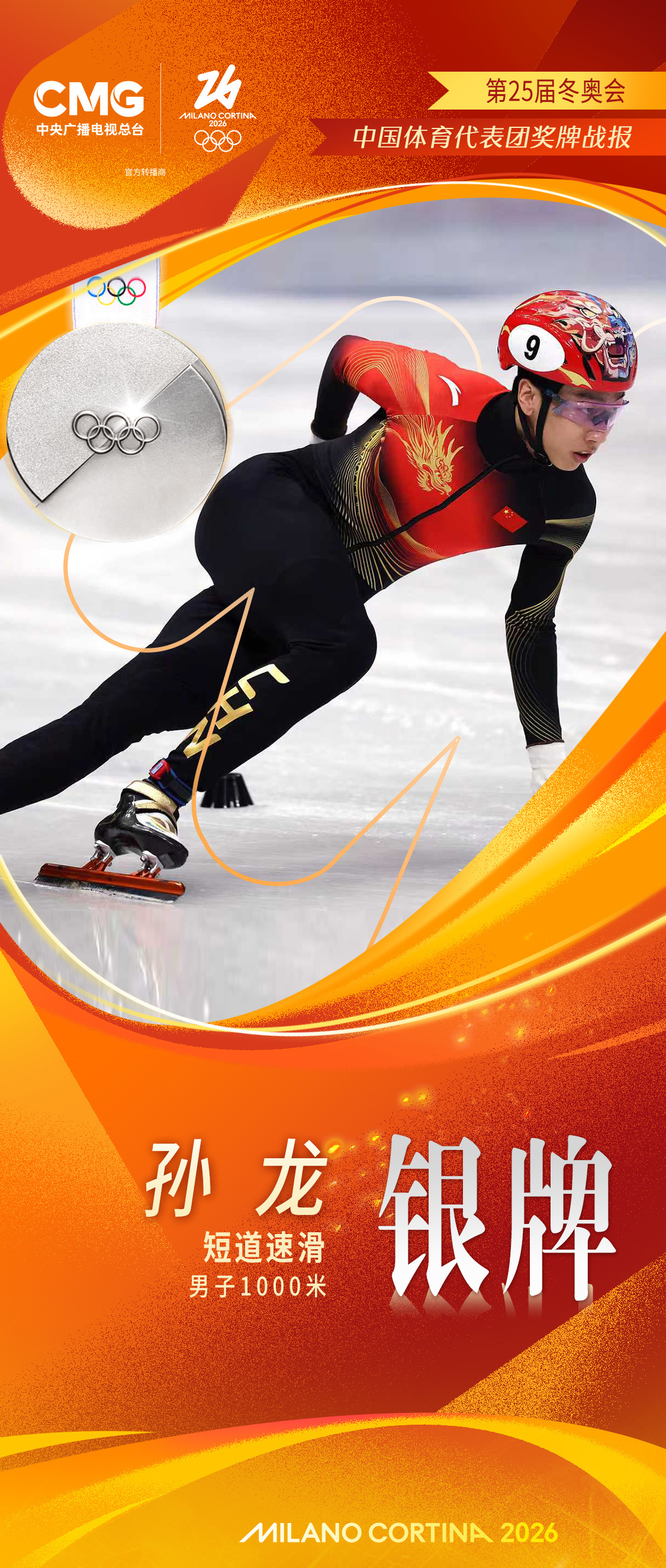 北京时间2月13日,米兰-科尔蒂纳冬奥会短道速滑男子1000米A组决赛,中国选手孙龙以1分24秒565的成绩获得亚军。冠军归属于荷兰选手范特沃特。