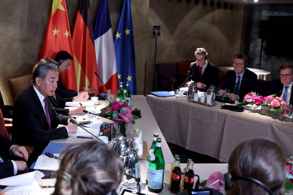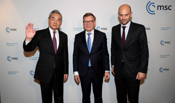 中共中央政治局委员、外交部长王毅13日在德国慕尼黑同德国外交部长瓦德富尔、法国外交部长巴罗举行三方外长会晤。