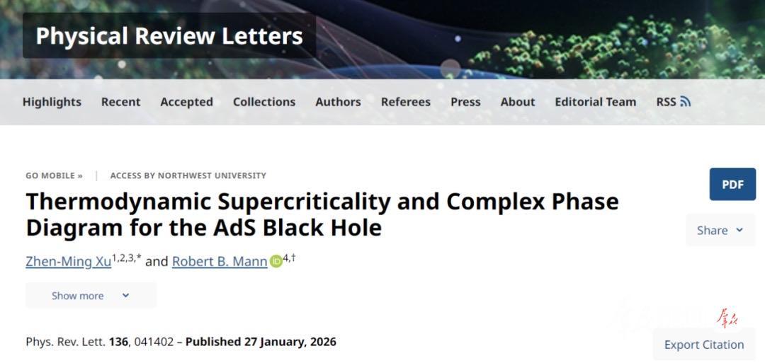 本研究通过引入复解析延拓与李—杨相变理论,首次成功构建出包含超临界细节的完整相图,使得深入解析黑洞超临界热力学行为成为可能。西北大学理论物理团队副教授许震明表示,此次研究不仅为量子引力与热力学的交叉研究提供了新方法,也为探索黑洞微观结构与量子效应开辟了新视角,同时为未来在引力波观测与量子模拟实验中探测黑洞相变提供了理论基础和潜在的检验路径。(群众新闻记者 郭诗梦)