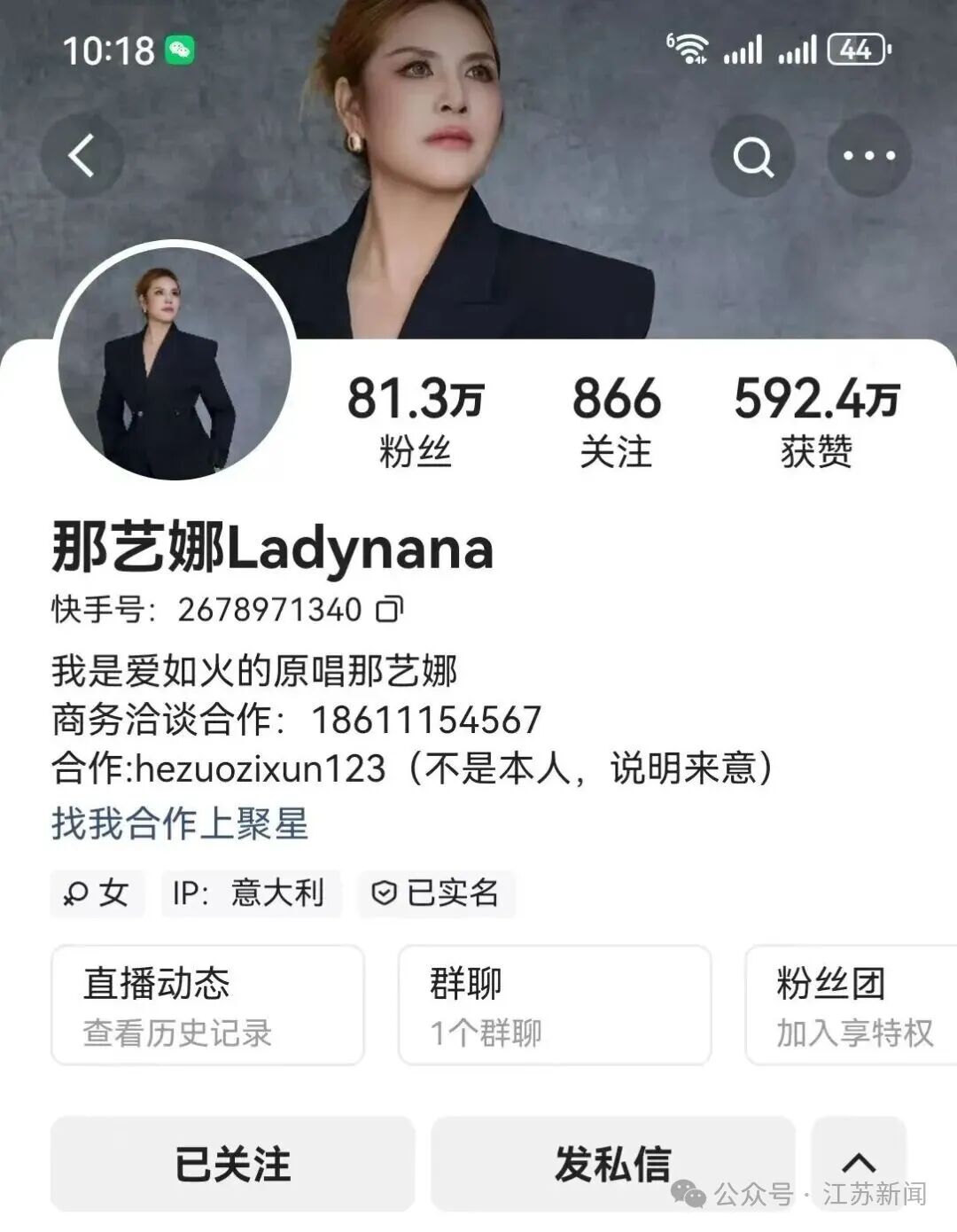 那艺娜多个账号被禁止关注视频已清空!此前被叫停演出