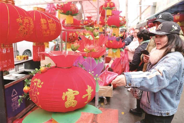 2月24 日,西安市三府湾附近的灯笼市场,市民挑选灯笼。 本报记者 马昭 摄