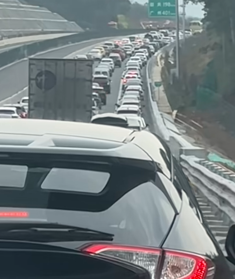 △2月23日,网友分享在京港澳高速上遭遇堵车的情况。