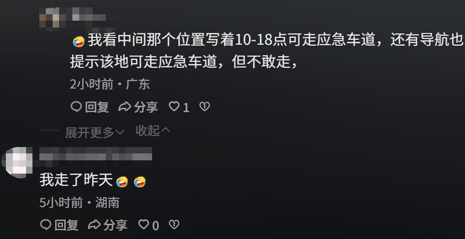 △部分网友对湖南高速开放应急车道的体验感受。
