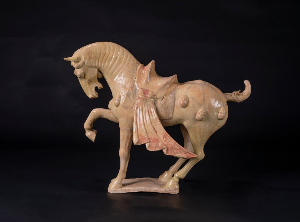 这是唐代黄釉舞马俑(受访单位供图)。