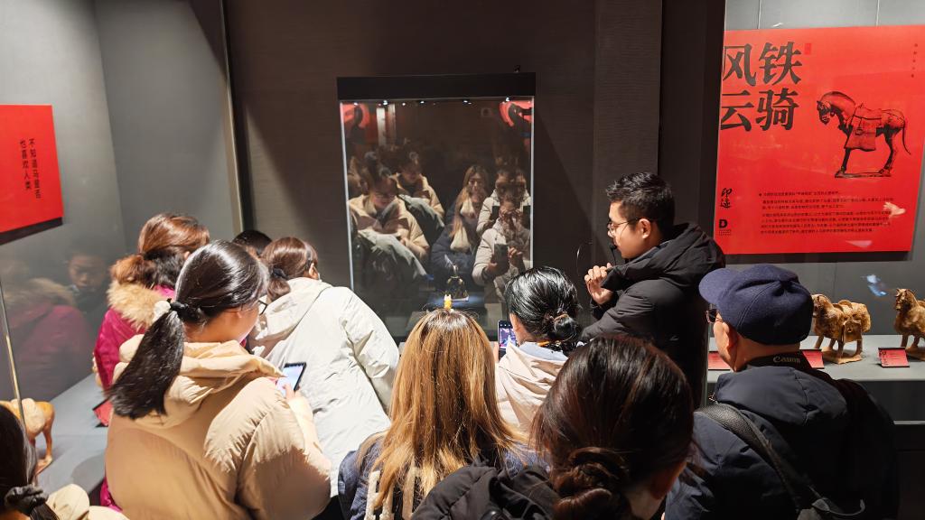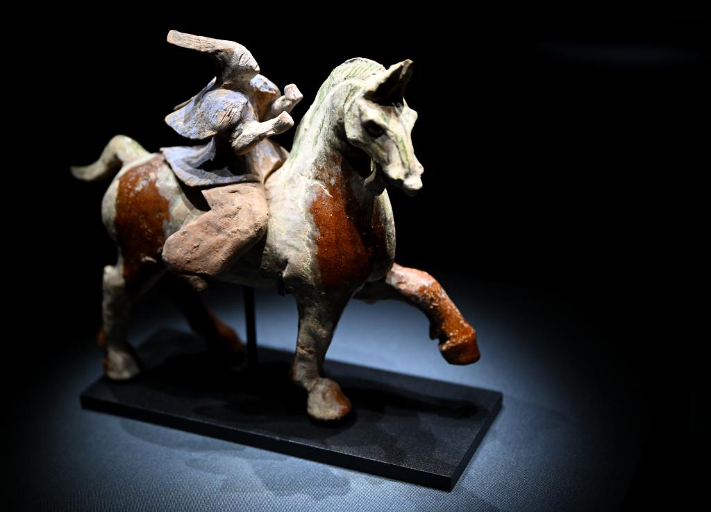 2025年12月26日在郑州大象陶瓷博物馆拍摄的三彩打马球俑。新华社记者 任卓如 摄
