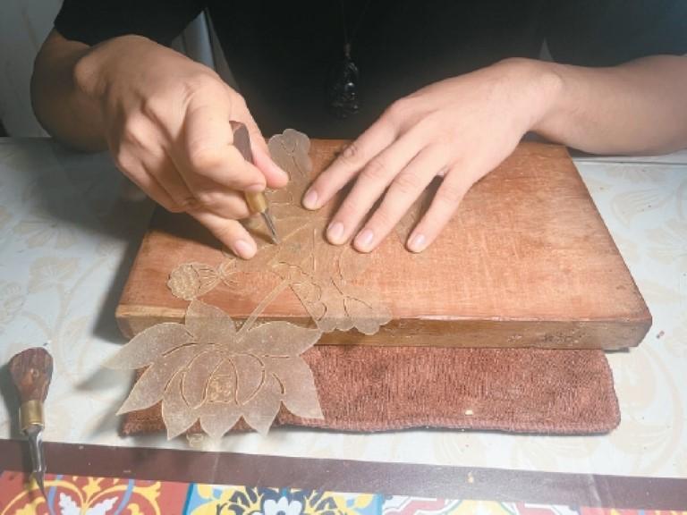 随后,他毅然拜师学艺,正月里别人走亲访友、热闹团圆,他却在师傅家中埋头练刀,手指磨出厚茧、划伤破皮也从不叫苦。从选皮、推皮到描稿、雕刻等,每一道工序都沉心打磨,短短半年便独立成作。2003年,杨新虎成立自己的工作室,从此一把刻刀守匠心,年年新春不停工。