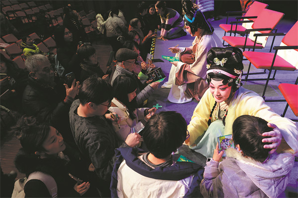 Audience members interact with performers during the 2025 China Experimental Xiqu Exhibition, held in Shanghai from Jan 27 to Feb 8. [Photo provided to China Daily]