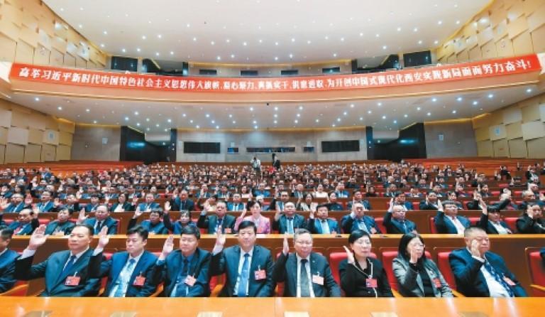 西安市第十七届人民代表大会第七次会议闭幕大会上,代表们举手表决通过各项决议。 记者 张曦 魏影 柯希飞 李学东 摄