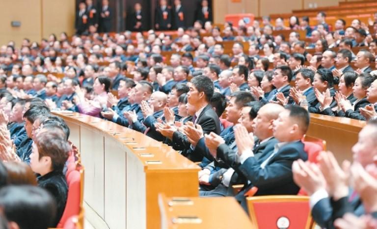 人大代表鼓掌祝贺大会各项决议草案通过 记者 张曦 魏影 柯希飞 李学东 摄