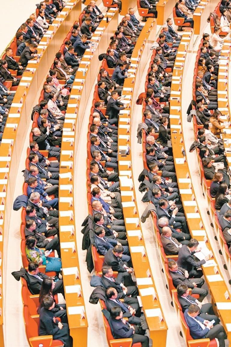 政协委员认真听取政协工作报告 首席记者 翟小雪 记者 郝钟毓 摄