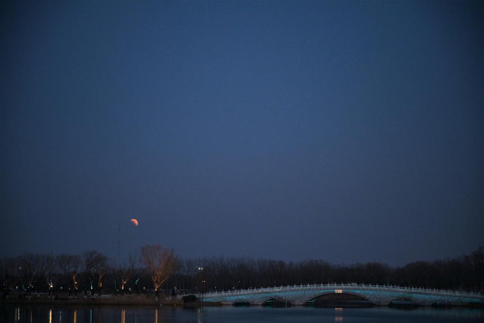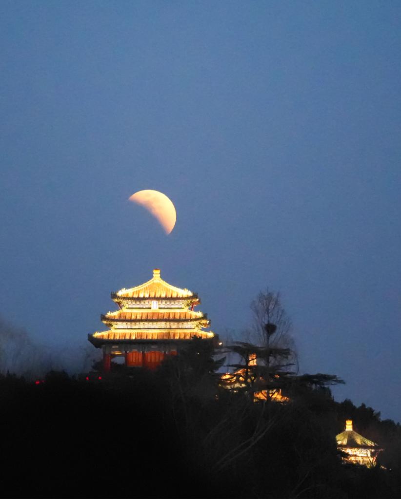 这是3月3日拍摄的北京景山万春亭和月全食。