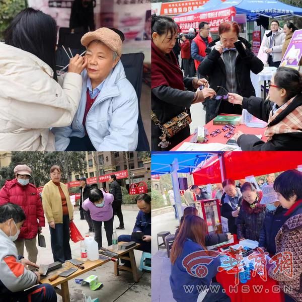 便民服务区:磨剪刀、洗地毯、配眼镜、修眉、贴膜等便民服务秩序井然。志愿者们手艺精湛,用实际行动诠释着奉献精神,赢得了居民的连连称赞。