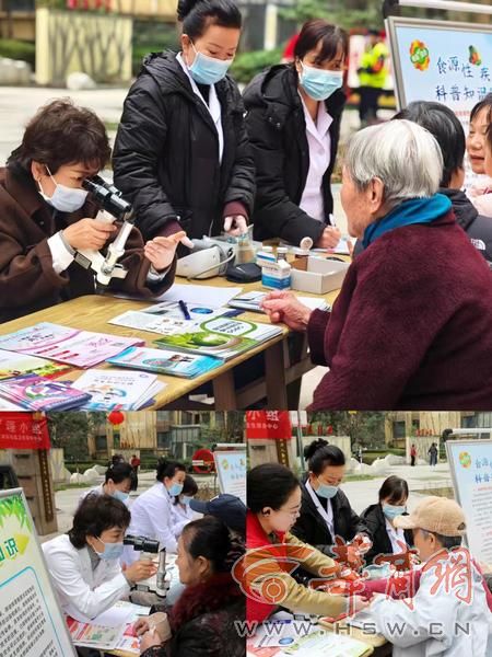 医疗关怀区:医护志愿者们为居民免费测量血压、血糖,提供健康咨询,普及春季养生及常见病预防知识。
