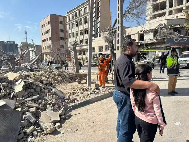 也有人内心很矛盾。我刚刚碰到一个人骑着摩托车过来,看着被炸的地方就哭了。他不让我拍他,但他告诉我:“不管自己喜欢不喜欢这个政权,他(指哈梅内伊)被杀死了,我都很难过。”他认为伊朗人有问题应该自己解决,不能由外国人来解决。“现在这样炸,炸死的是伊朗人啊!”我能说什么呢?很多人的态度就是这样,不是非黑即白的。