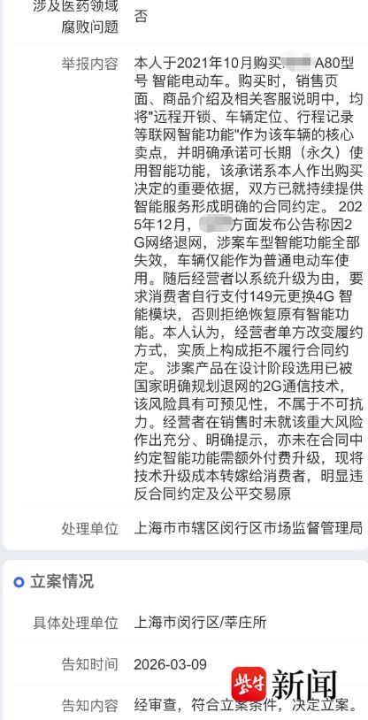 张律师表示,依据《民法典》第563条、第610条,违约行为致使合同目的不能实现的,构成根本违约。案涉车辆智能功能失效,沦为普通电动车,消费者订立合同的核心目的落空。品牌方要求消费者自费149元升级4G模块,系单方变更合同,无法律与合同依据。消费者有权主张继续履行(免费升级)、解除合同并退款,或要求赔偿损失;市场监管部门已立案,进一步佐证其行为的违法性。