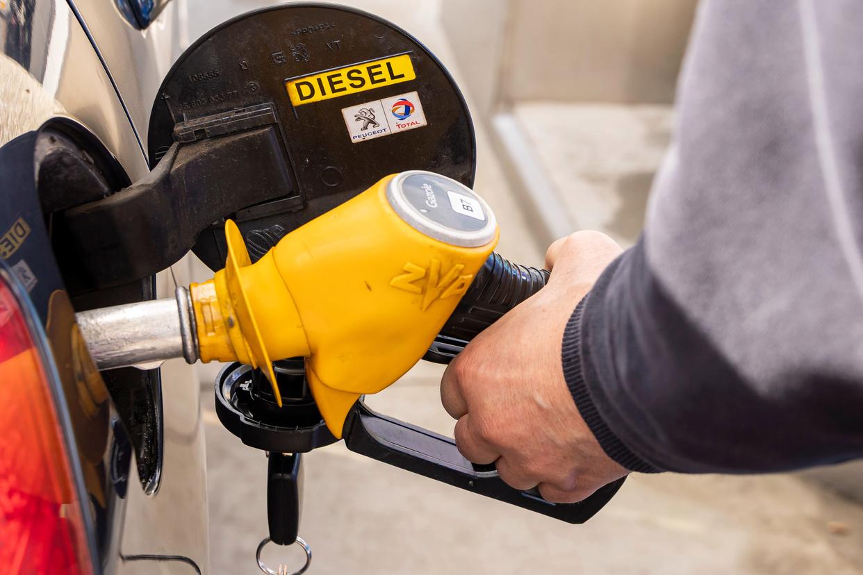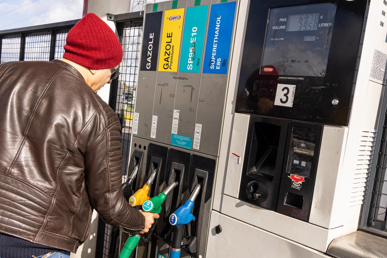 3月11日,顾客在法国北部的阿斯克新城一处加油站加油。新华社发(塞巴斯蒂安·库尔吉摄)