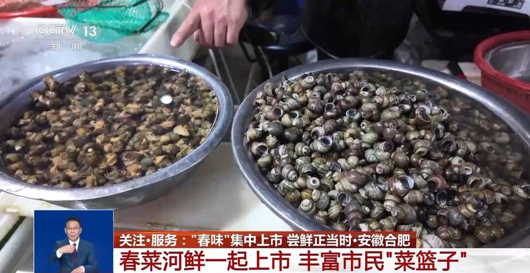 在合肥经开区的一家农贸市场,春菜和时令水产同样迎来了销售高峰。在水产区,摊主将剪好尾尖的螺蛳整齐码放,方便消费者买回家直接烹饪。