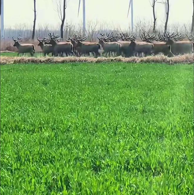 3月13日,大丰区自然资源和规划局工作人员介绍,附近保护区有野生麋鹿,成群活动,种群数越来越多,目前有8000多头。麋鹿到啃庄稼的情况确实存在,现在小麦刚出苗,麋鹿喜欢吃,有百姓受到一定损失。
