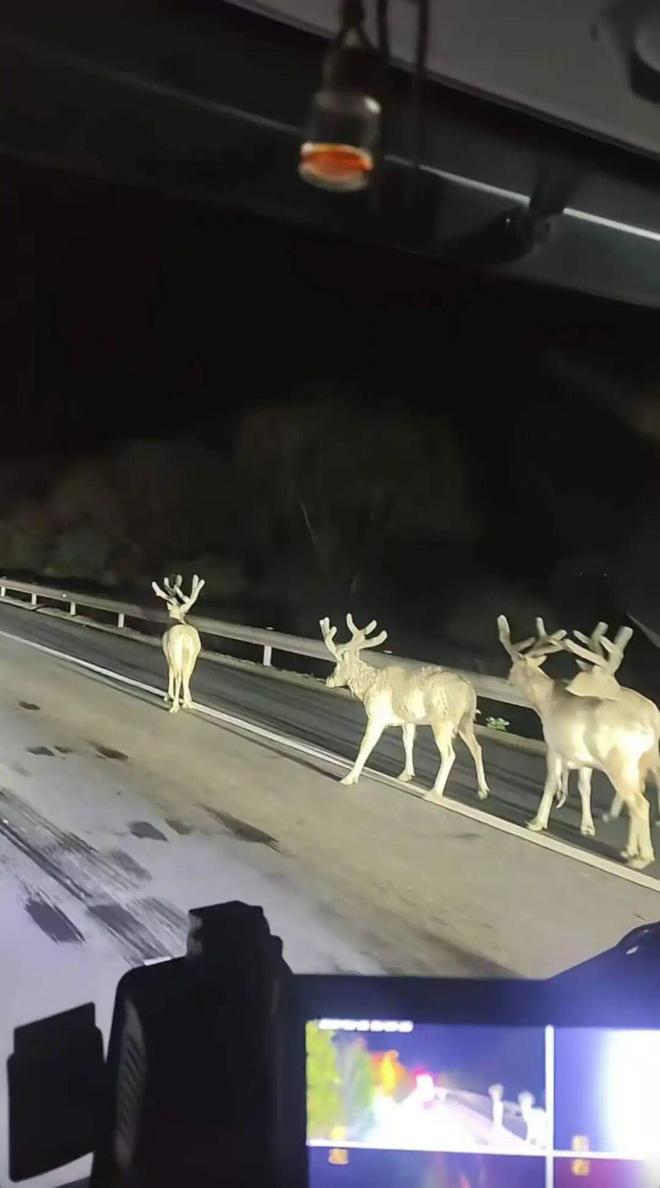 △道路上出现麋鹿。图/网络