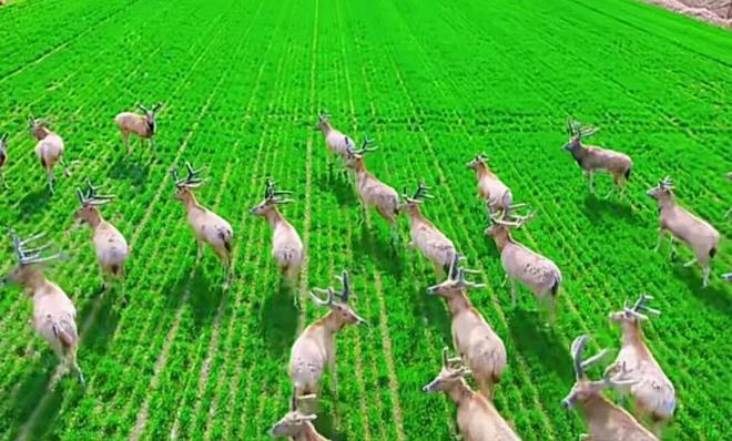 △麋鹿在田间。图/网络