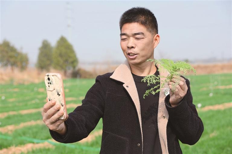 去年冬季播种较晚,小麦基本苗长势不及往年。万光辉随手拔起一株麦苗:“往年这个时候,年前已经有三四个分蘖,今年很多还是‘一根针’。”为了弥补苗情不足,他抢抓晴好天气,加紧水肥管理、开展化学除草,与时间赛跑。