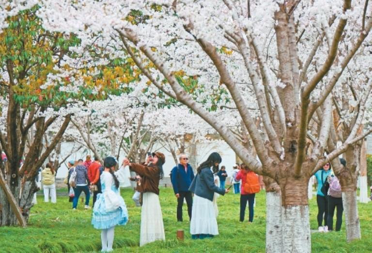 3月18日,春日里的小雁塔,飞檐在粉白樱云中若隐若现,满树繁花如云似雪,细碎的花瓣缀满枝头。漫步在樱花树下,花瓣随风轻颤,落得肩头皆是温柔。游人或举着手机定格花与塔的剪影,或在花径间驻足浅笑,连空气里都飘着清甜的花香。千年小雁塔静静伫立,见证着岁岁年年的花开花落,也将长安城的温柔春光妥帖收藏。