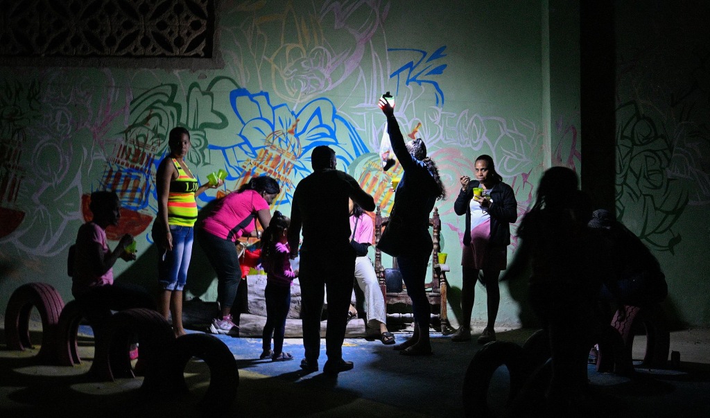 2026年3月4日,哈瓦那民众在停电期间用应急灯聚会。视觉中国 图
