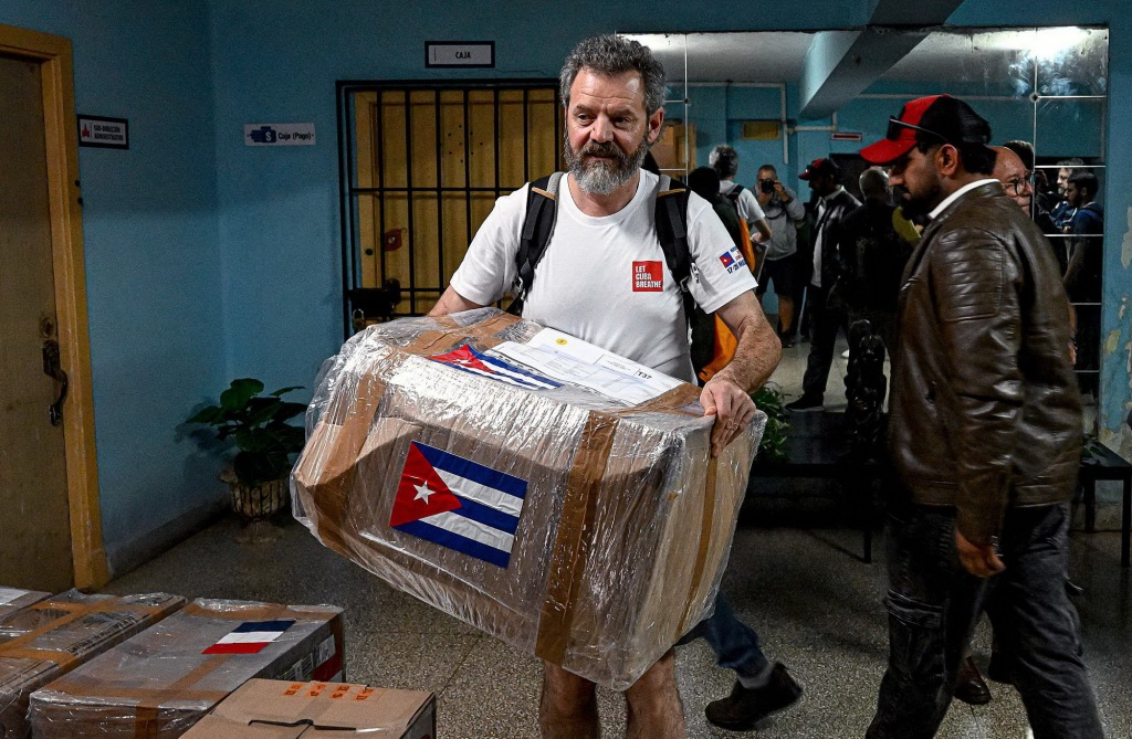 2026年3月18日,古巴哈瓦那,欧洲援助车队成员将援助物资箱搬进一家儿童医院。视觉中国 图