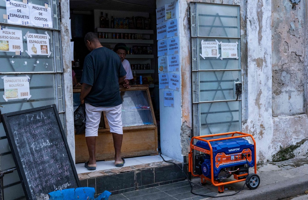 2026年3月5日,古巴哈瓦那,一名店主在停电后使用发电机。视觉中国 图