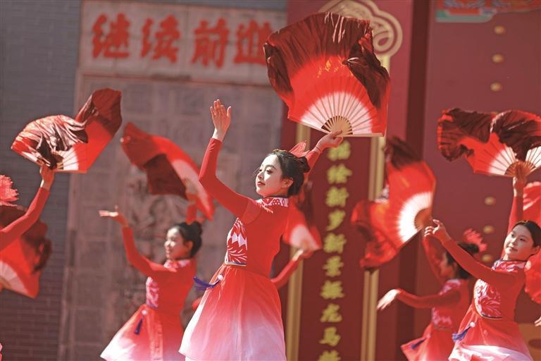 3月20日,澄城县冯原镇举办“冯原正春分·马年到马村”文旅活动。图为演职人员表演舞蹈《抬龙王》。 本报通讯员 崔正博摄