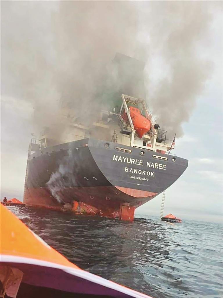 3月11日,一艘泰国货船在霍尔木兹海峡海域遭袭起火。 新华社发(资料照片)