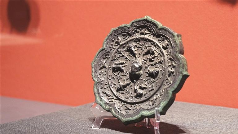 嵌银瑞兽纹菱花镜:忍冬纹寄托长寿祝福