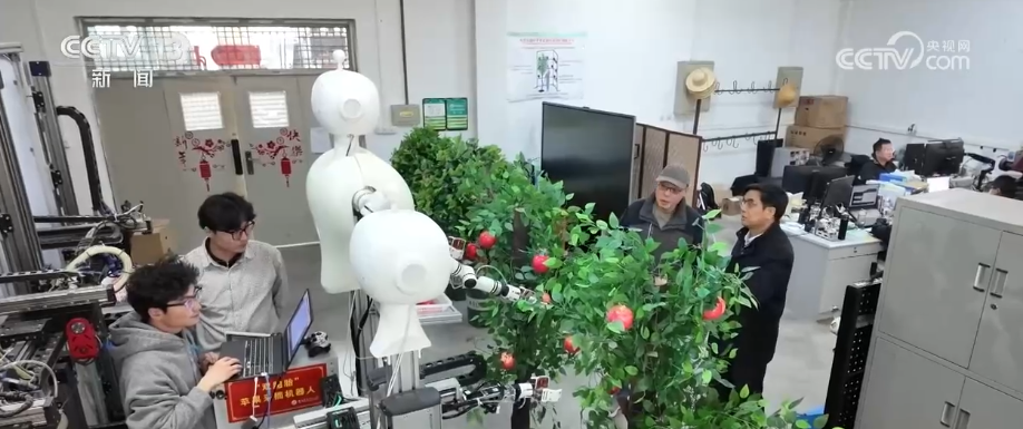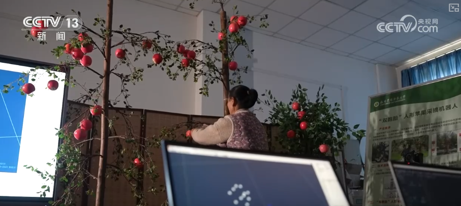 静音(m)全屏(f)ADCountdown Time | 广告关闭广告 尊贵的用户,已为您跳过广告 您上次观看至-:-处,已为您续播 正在加载 视频播放器。播放(p)播放视频播放(p)当前时间 0:00/时长 2:16媒体流类型 直播 高清画质超清高清, 选择标清流畅静音(m)全屏(f)加载完成: 22.02%-88:88core:undefined undefinedwrap:3.6.6 26.03.03画中画央视网消息:“十五五”规划纲要提出,面向生物育种、生产管理、疫病防治等场景加快农业数智化升级。在传统的农业生产中,受作物特性和环境影响,水果采摘主要是靠人工来完成的。最近,科研人员研制出一款苹果采摘机器人并投入实际验证。机器人怎么摘苹果,如何提高生产效率?在西北农林科技大学这个模拟果园环境的实验室里,记者见到了这台正在做采摘训练的设备。它们由一大一小两个半人形机器人组成,一人多高的身躯,共用履带式底座。科研人员给他们取了一个有趣的名字——“双胞胎”机器人。西北农林科技大学教授杨福增就是,高个子的叫“大娃”,它负责1.5米以上的高处苹果的采摘,低个子的叫“小娃”,负责低处苹果采摘。“弟兄”两个默契配合,把整个树上的苹果都采下。科研人员表示,“双胞胎”机器人摘苹果关键是靠安装在头部和机械臂上的视觉系统。它们就像是“眼睛”,能精准扫描果树形状、果子的色泽和大小,并立马把这些信息传输给机器人的“大脑”。两个机器人都是双臂作业,但小娃的机械臂是直方形的工业机械臂,而大娃的手臂更像人的胳膊,关节也更多、更灵活。新技术解锁“双胞胎”机器人新技能静音(m)全屏(f)ADCountdown Time | 广告关闭广告 尊贵的用户,已为您跳过广告 您上次观看至-:-处,已为您续播 正在加载 视频播放器。播放(p)播放视频播放(p)当前时间 0:00/时长 2:42媒体流类型 直播 高清画质超清高清, 选择标清流畅静音(m)全屏(f)加载完成: 18.48%-88:88core:undefined undefinedwrap:3.6.6 26.03.03画中画据了解,实际果园环境比实验室情况要复杂很多,还需要大量场景验证。这段时间,科研人员正不断进行技术优化,争取让“双胞胎”机器人早日投入应用。这几天,科研人员请来一些有多年种果经验的果农,让他们在实验现场摘苹果。用专业的动作捕捉系统,一遍遍采集摘果时的手势、力度、运动轨迹等数据,以便进一步设计、优化机器人采摘爪的动作。果农炊水利家中有8亩果园,每年能产4万斤苹果。每到采摘季,全家5口人前后要忙一个多月。如果雇人的话,人工费要占到卖果收入的三成,要是遇到刮风下雨更是犯愁。听说采摘机器人平均7.5秒能完成一个单果采摘,未来如果顺利投入使用,一个小时就能摘800个苹果。炊水利满是期待。除了推进采摘爪的技术优化,科研团队还有一项重要任务——测算机器人爬坡的最大角度,并挑战它跨越沟坎的极限能力。在这片模拟丘陵地形的试验平台,在取得最大爬坡角度为15度的数据后,大伙又用铁锹一次次加深、加宽土沟,反复测试它的通过能力。科研人员表示,他们要抓紧时间优化,争取在2026年秋天苹果成熟季时,让“双胞胎”机器人投入到实际采摘中。智能装备组团 提升果园采收效率静音(m)全屏(f)ADCountdown Time | 广告关闭广告 尊贵的用户,已为您跳过广告 您上次观看至-:-处,已为您续播 正在加载 视频播放器。播放(p)播放视频播放(p)当前时间 0:00/时长 1:27媒体流类型 直播 高清画质超清高清, 选择标清流畅静音(m)全屏(f)加载完成: 34.14%-88:88core:undefined undefinedwrap:3.6.6 26.03.03画中画陕西是果业大省,仅苹果产量就占全国的约四分之一。但很多果园都分布在丘陵和沟壑地带,大型机械无法进入,人工成本很高。2026年,当地加快研发具身智能等先进装备,提升果园采收效率。在这片500多亩的果园里,一场立体作业的模拟演示正在进行。地面上,一辆巡检机器人来回穿梭,除了检查病虫害,它在摘果期还能监测果园里的采收细节和进度。而在不远处,两台转运机器人和采摘机器人密切配合,及时转运着摘好的果子。在果园上空,一架无人机正在低速飞行,通过遥感相机扫描着整个地面状况。目前,陕西正加快推广智能育种、数字孪生果园、丘陵山区专用智能装备,通过全链条大数据管控、绿色低碳生产等新技术,扩大智慧果园覆盖面积,推动技术向小规模果园下沉,持续提升果园综合生产能力。 来源:央视网 相关热词搜索:
