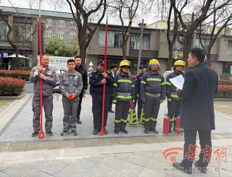 演练开始前,皇城坊安全主管对现场消防器材进行了集中讲解,重点介绍了常见消防器材的作用及正确使用方法,提醒大家遇到突发情况要保持冷静、科学处置,先确保自身安全,再进行初期扑救与报警联动。