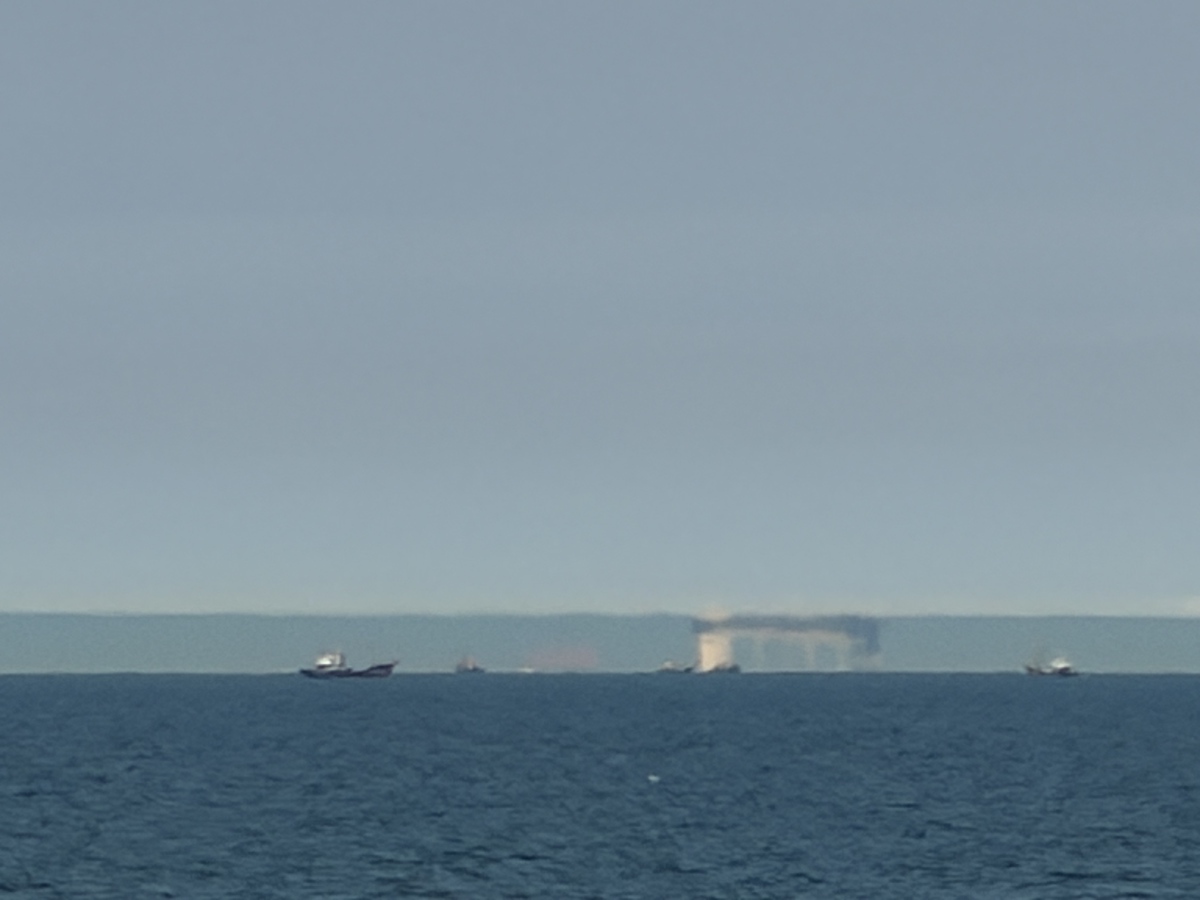马先生称,他在秦皇岛经营一家民宿。3月28日14时20分左右,他在海边拍摄视频时,发现远处的地平线附近开始出现模糊的影像,之后影像越来越清晰。