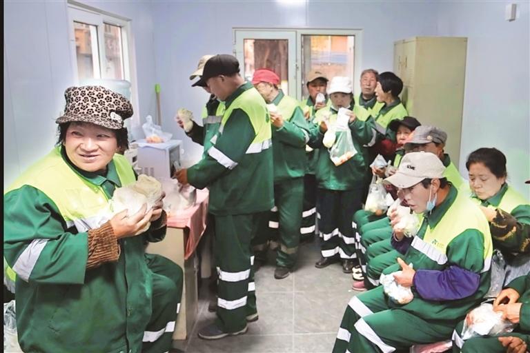 “我们每天凌晨4点多就出门干活,有时候来不及在家做饭,只能在路边买个馒头应付一下。”正在吃早餐的环卫工人田翠叶说,如今政府给他们提供免费早餐,每天都能吃上热乎饭,不仅胃暖了,心里更暖,一早上的疲惫也消散了不少,干活也更有劲头了。