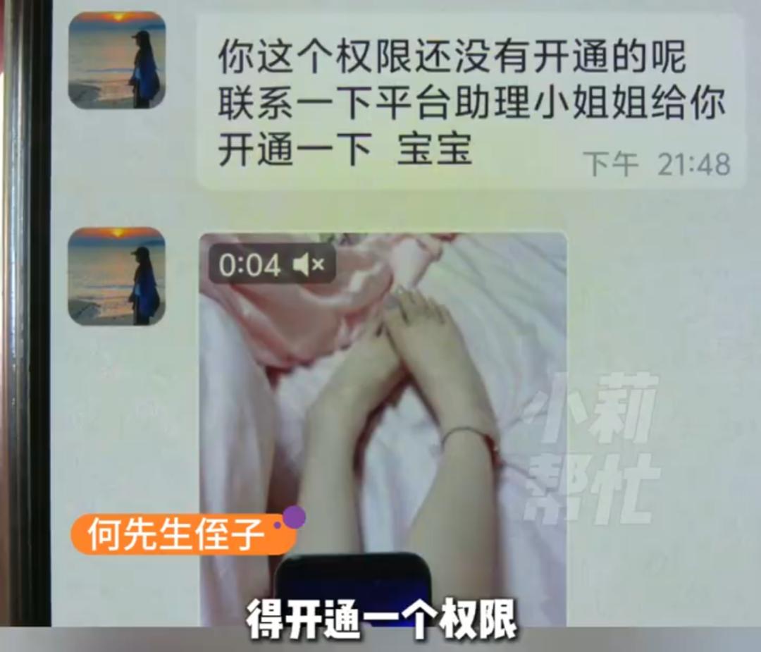 而这个码并不是租借共享单车的码,而是印刷在共享单车车筐内的广告二维码。小张扫码后,添加了一个客服小姐姐,没经受住诱惑,小张又在客服的引导下,在平台开通“权限”。