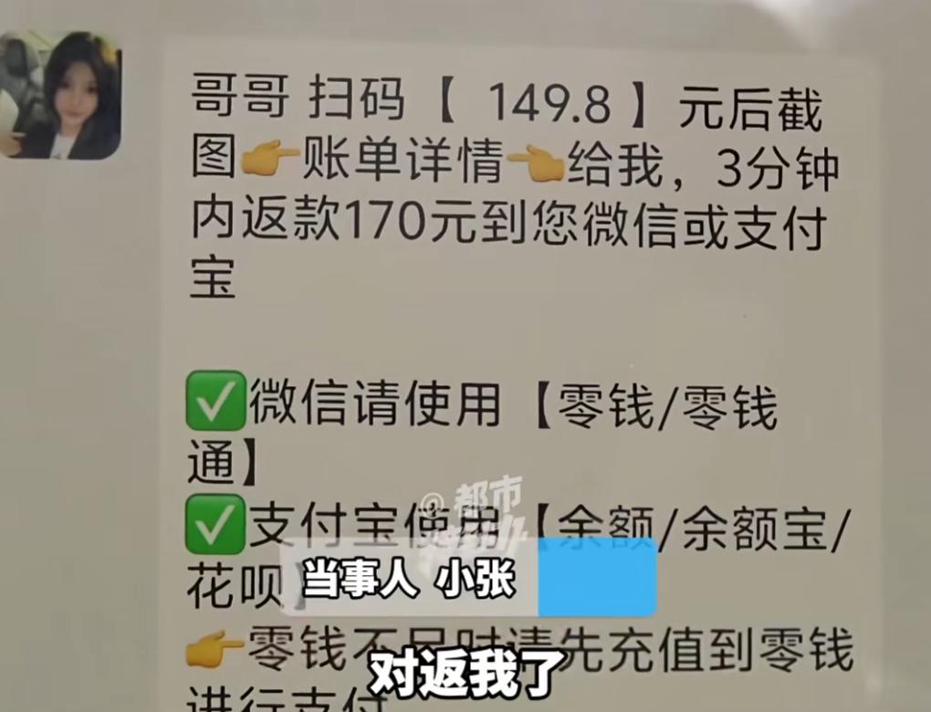 客服小姐姐声称,这个平台不仅可以找女友,还能赚钱返现,冲20返40,充150返170。
