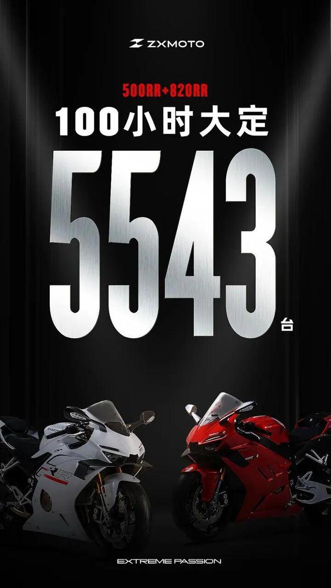 数据显示,3月21日,张雪机车2026款500RR和820RR开启预定,100小时内大定订单突破5543台,创下国产中排量仿赛车型预定新纪录。这两天这两款车的预订量还在快速增长,其中500RR订单超过5000台,820RR订单超过4000台。