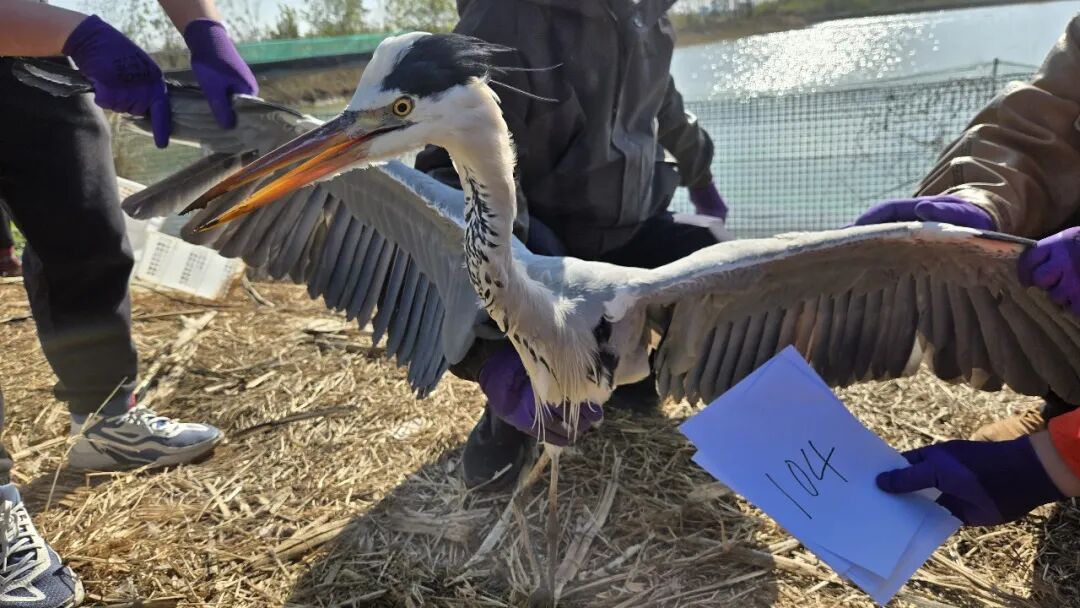 湖北武汉市公安局黄陂区分局成功侦破一起特大非法狩猎、贩卖野生动物案件,图为现场查获的活体苍鹭。