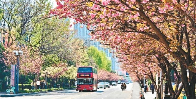 4月1日,西安高新二路繁花似锦,织就一幅春日图景。