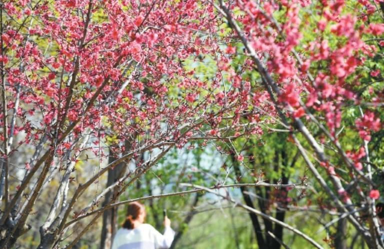 4月1日,大明宫国家遗址公园春意盎然,吸引市民游客拍照留念。